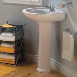 - Pedestal sink base – perfect for tight bathrooms; lends to a larger feel of the room