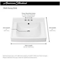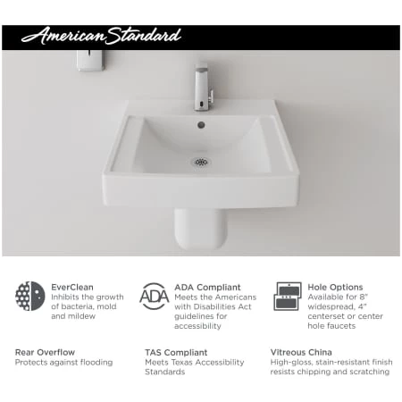 The Decorum Wall-Hung Bathroom Sink from American Standard is a sleek, spacious option for the busiest bathrooms. This contemporary design is made of high-gloss vitreous china featuring EverClean to inhibit the growth of stain and odor-causing bacteria, mold and mildew on the surface. The Decorum Sink from American Standard stands up to the rigors of steady use and high traffic, promising easy-clean convenience, ADA accessibility, and the option to use with or without shroud (sold separately).