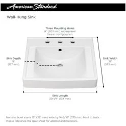 - Faucet Centers: 8″ (distance between outer faucet holes)