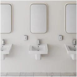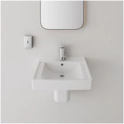 The Decorum Wall-Hung Bathroom Sink from American Standard is a sleek, spacious option for the busiest bathrooms. This contemporary design is made of high-gloss vitreous china featuring EverClean to inhibit the growth of stain and odor-causing bacteria, mold and mildew on the surface. The Decorum Sink from American Standard stands up to the rigors of steady use and high traffic, promising easy-clean convenience, ADA accessibility, and the option to use with or without shroud (sold separately).