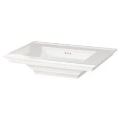 - Pedestal sink top with center hole faucet configuration with rear overflow